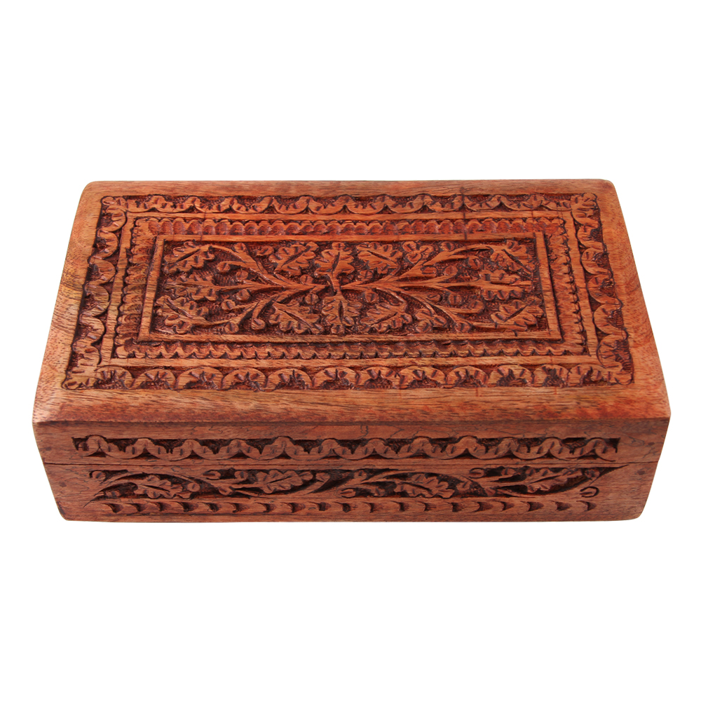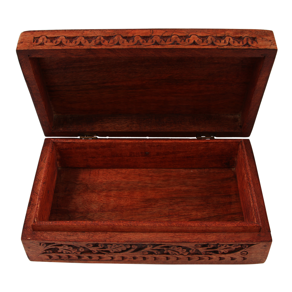 Diese Holzbox ist unbefüllt und eignet sich besonders gut für die Aufbewahrung von Schmuck, Steinen, Räucherzubehör, etc.