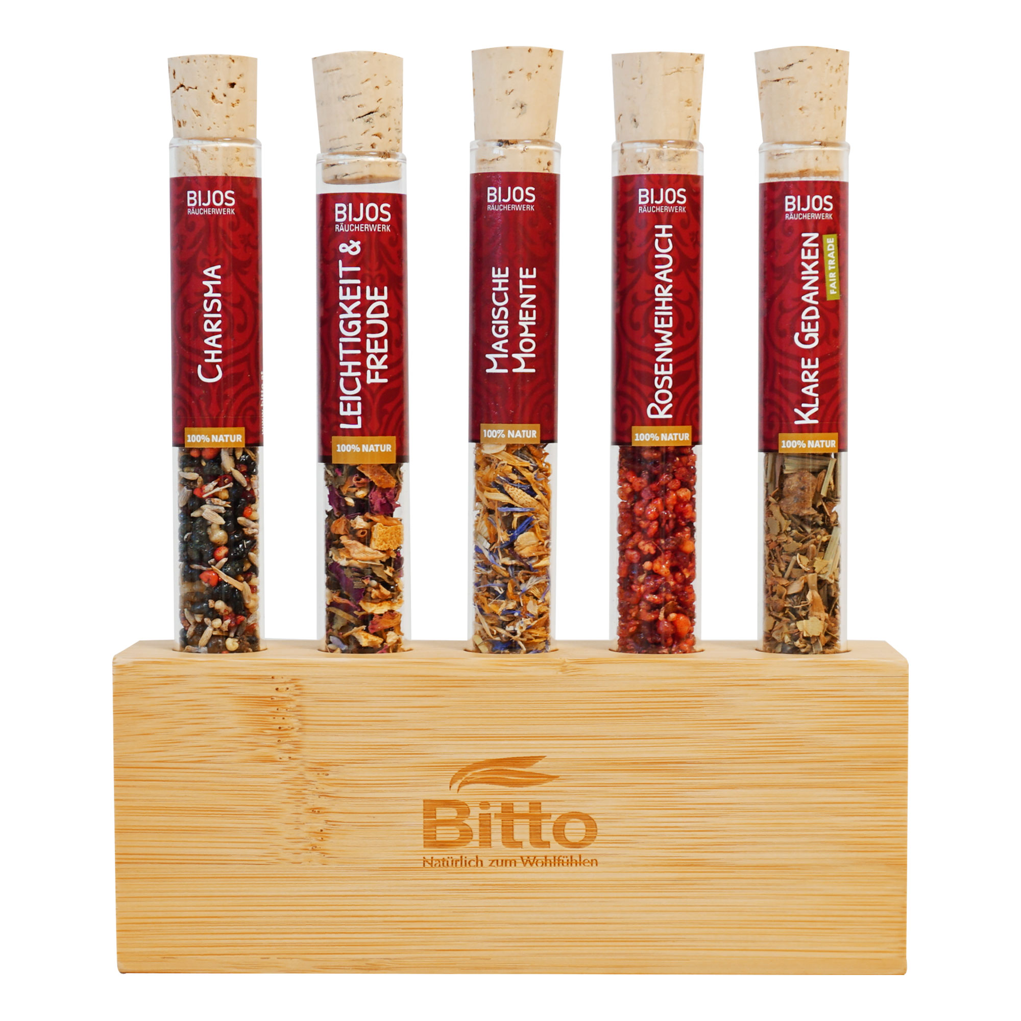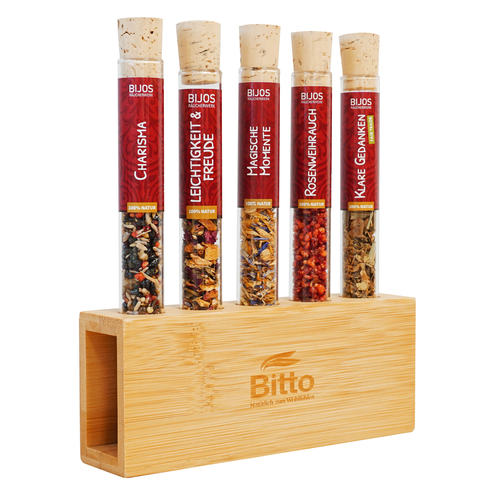 Schlichtes, funktionales Display aus hochwertigem Bambusholz zur Präsentation und Aufbewahrung von 5 Räucherwerken im 35 ml Glasröhrchen. Die klare Form ermöglicht eine übersichtliche Anordnung und schnellen Zugriff, sodass das Display sowohl im Fachhandel oder auf Messen als auch zuhause als dekorative Aufbewahrung überzeugt.
